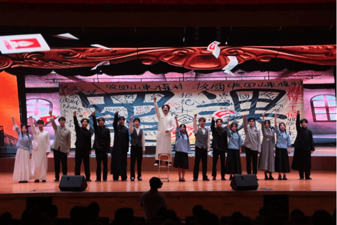 小德川流,大德敦化。我校始终将爱国主义教育作为育人的根基,深耕以爱国主义为核心的民族精神沃土,推动新时代思想政治教育在守正创新中焕发生机。这场跨越百年的精神“对话”,既是对革命先驱的崇高致敬,更是对当代青年的使命召唤。我校以红色舞台剧为生动载体,让党史学习教育从书本走向舞台,实现了“可观的历史场景、可感的情感共鸣、可参与的沉浸体验”,激励师生在传承红色基因中汲取奋进力量,以躬行实践的担当姿态迎接党的生日,为实现中华民族伟大复兴的中国梦贡献力量。