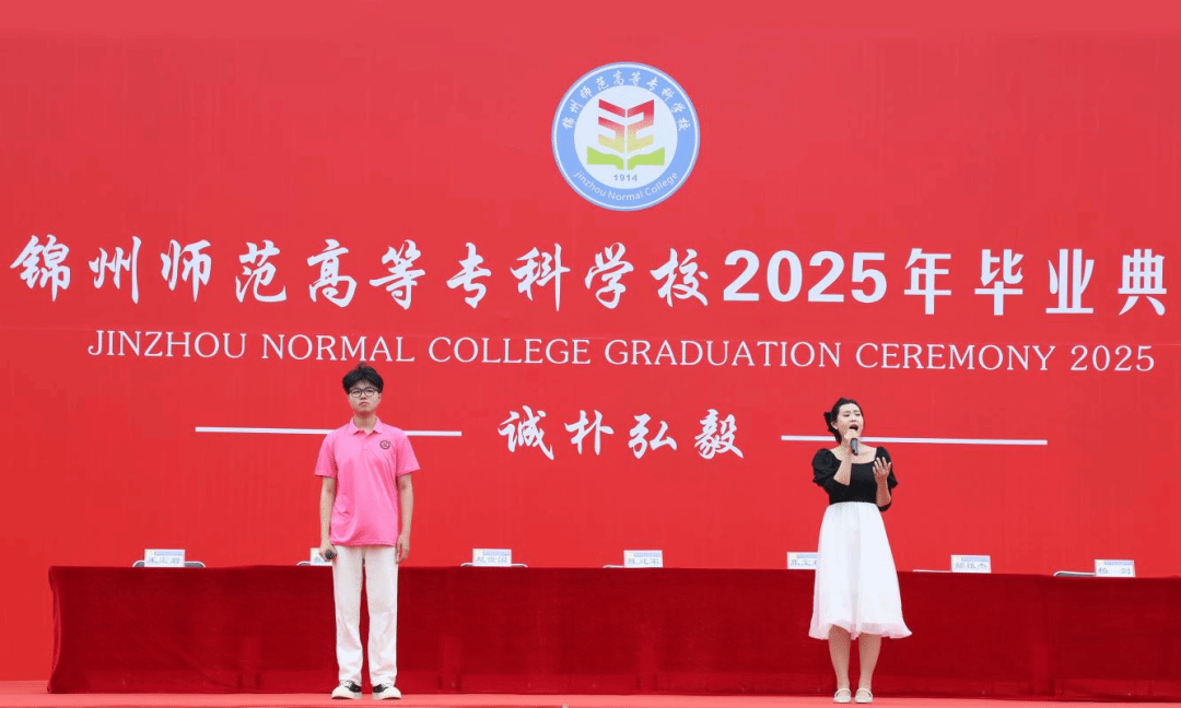 环境与健康学院的刘诗彤和机电工程学院的李琦代表2025届全体毕业生发言。刘诗彤回顾了三年来与锦州师专最独特又最深刻的温暖记忆和对母校的热爱,并呼吁毕业生们以校训“诚朴弘毅”为灯,以理想为帆,以奋斗为桨,在时代的浪潮中书写青春的光影。