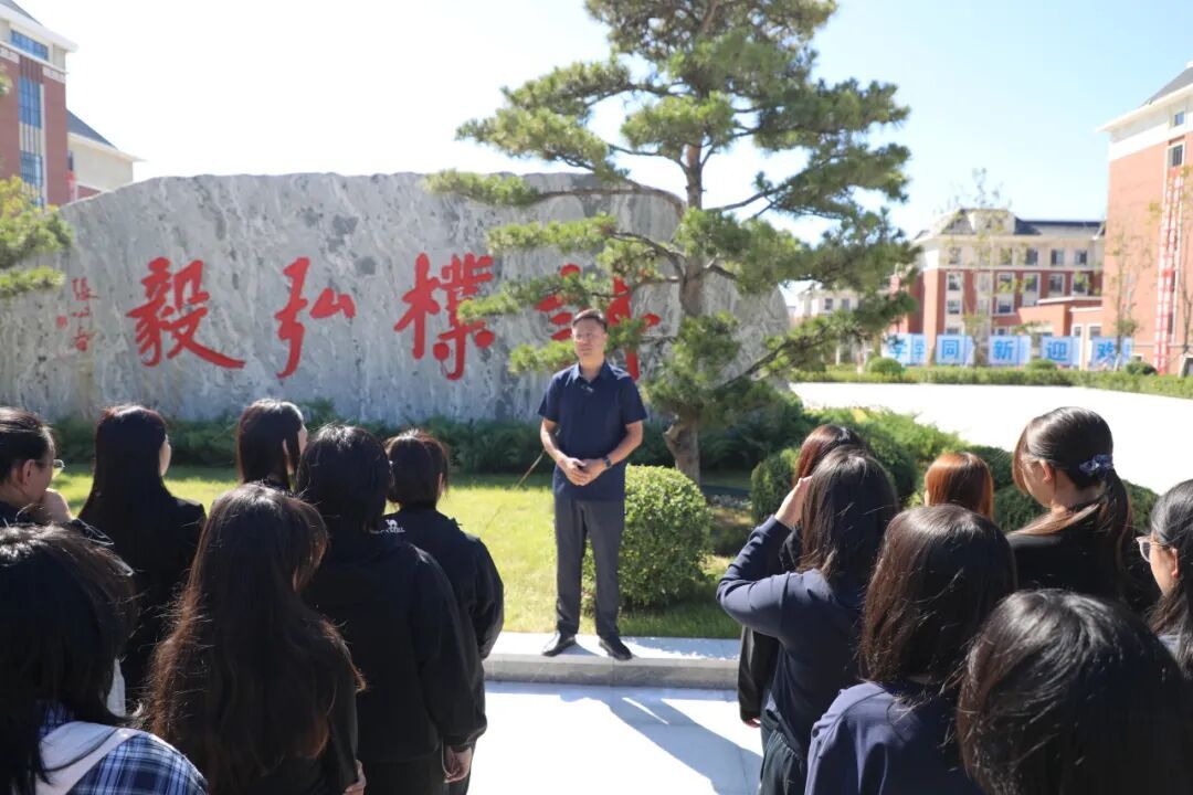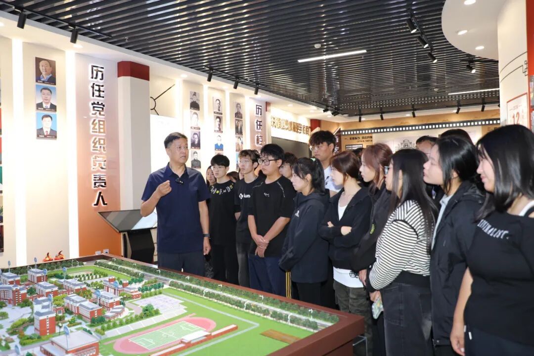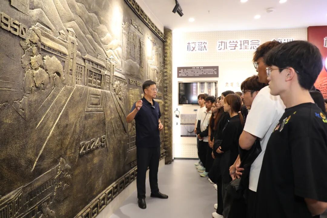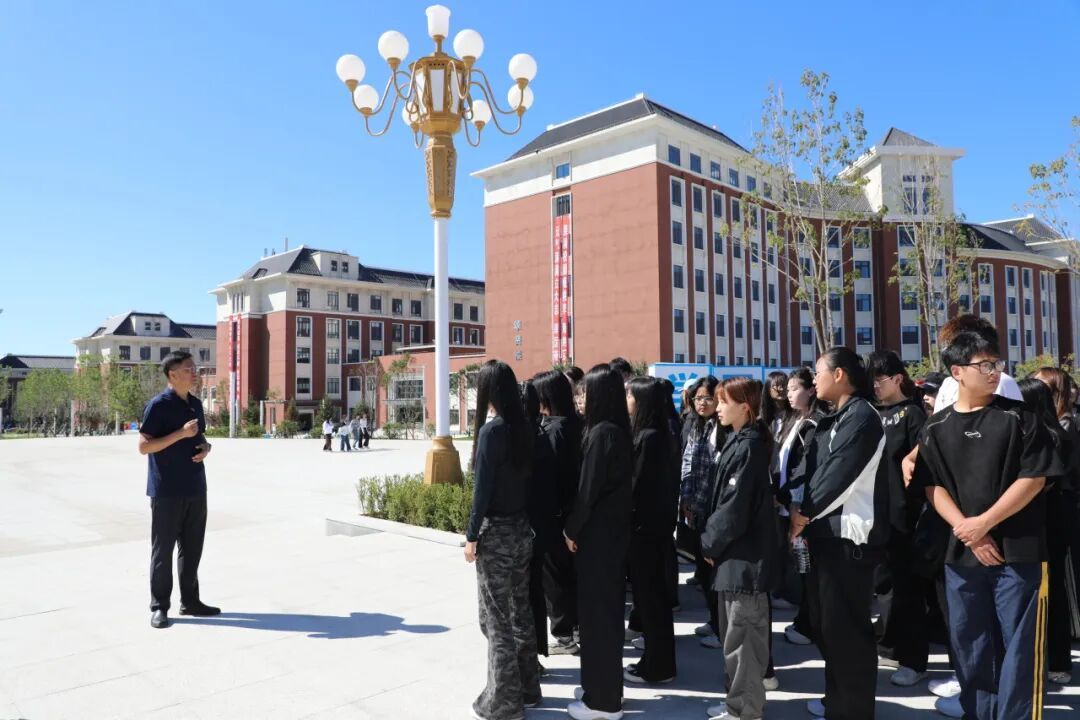 陈建军带领新生走出传统课堂,以校园为“活教材”,沿“继往开来广场—校训石—教学楼—校史馆”路线展开教学。在镌刻“诚朴弘毅”的校训石前,他深情解读校训从创校“诚朴”到如今“诚朴弘毅”的演变,结合“九一八”历史背景,阐释“弘毅”二字背后“宁折不弯、保家卫国”的精神内核,叮嘱新生将个人理想与家国命运紧密相连;在教学楼前,他结合“理实一体化”教学理念,讲述抗战时期学校前辈“以教育为盾、以信念为矛”,在绝境中坚守课堂、传播真理的事迹,展现师专人“树人兴邦”的使命担当。