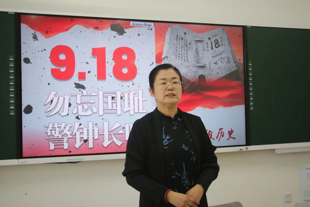 马克思主义学院院长赵金轶以《勿忘国耻 警钟长鸣》为题讲授专题思政课。她依托辽宁红色资源,通过珍贵史料、历史图片还原“九一八”事变始末,深入解读中国共产党领导人民浴血奋战的英雄史诗,同时将校史中前辈“以教报国”的红色故事融入教学,让课堂既有历史厚度,又有情感温度,引导学生从课堂中感悟家国大义,坚定理想信念。