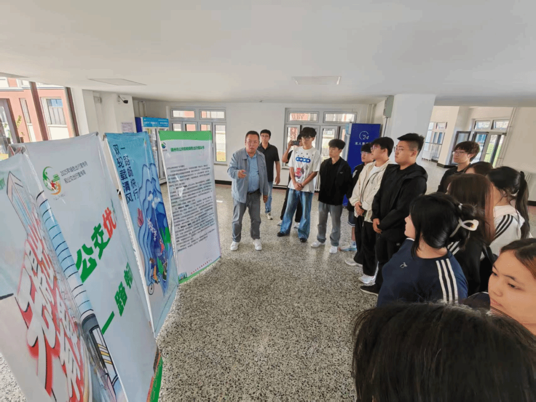 宣传方面,在校内雅集楼、月华楼、知辛楼及图书综合楼等人流密集区域布置四套主题海报,以直观的视觉语言传递绿色出行理念。总务处相关人员走进学生中间,现场讲解绿色出行知识,开展互动交流,增强师生认知和理解。