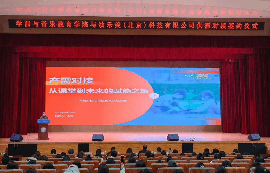 为深入贯彻落实教育部供需对接就业育人项目精神,深化产教融合与校企合作,2025年10月29日,我校与幼乐美(北京)教育科技有限公司第四期教育部供需对接就业育人项目正式启动。