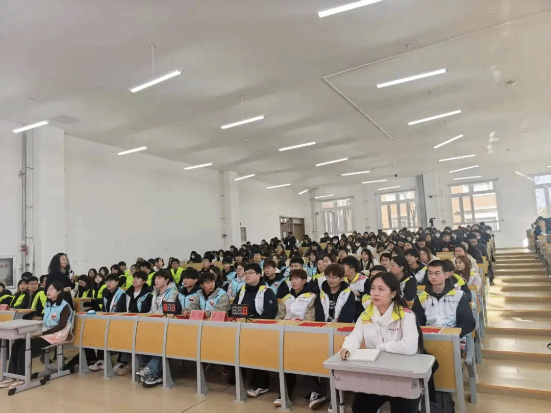 为深入推动雷锋精神与思政教育深度融合,创新职业院校思政课教学模式,提升教师课程设计与实践教学能力,11月20日,我校成功举办“雷锋式职业人素质训练”示范课活动。本次活动特别邀请辽阳职业技术学院马克思主义学院院长佟艳教授亲临授课指导,学校全体思政课教师、全体学工人员及青年教师现场参与听课,参与课程的学生团队全程沉浸式体验,同时线上通过腾讯会议同步观摩示范课的各分会场师生近千人,共同打造了一场覆盖广泛、兼具理论深度与实践温度的教学盛宴。示范课由学校马克思主义学院党总支副书记周莹主持。