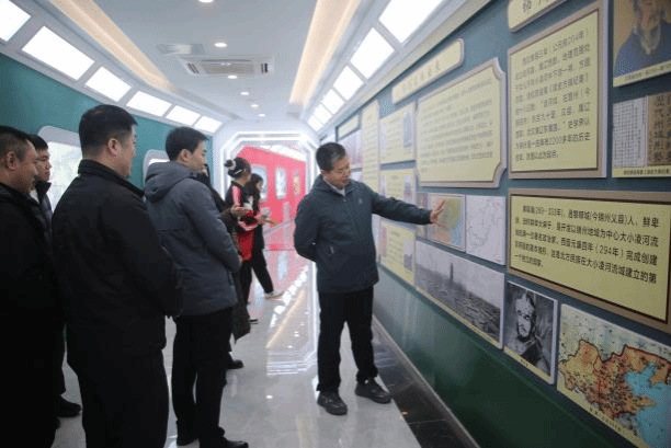 随后,全体人员走进滨海锦州文化长廊,共同探寻锦州地区的历史沿革与文化发展脉络。从古至今,锦州历经无数变迁,深厚的历史文化底蕴令人赞叹。师生们仿佛登上“时光列车”,在各主题“车厢”中沉浸式感受锦州魅力:在“历史记忆”板块,大家驻足凝视辽西古道的沧桑印记与红山文化的文物复刻,聆听“老马识途”等成语典故背后的锦州故事;在“英雄城市”板块,辽沈战役的珍贵影像让学子们深切体悟革命先辈的奋斗精神;而“多彩农业”与“电商基地”板块的衔接展示,成为此次参观的核心亮点——锦州苹果、义县干豆腐等19个“辽宁省百强农产品品牌”通过电商直播走向全国的案例,让学生直观见证地方特色文化转化为经济价值的生动实践。