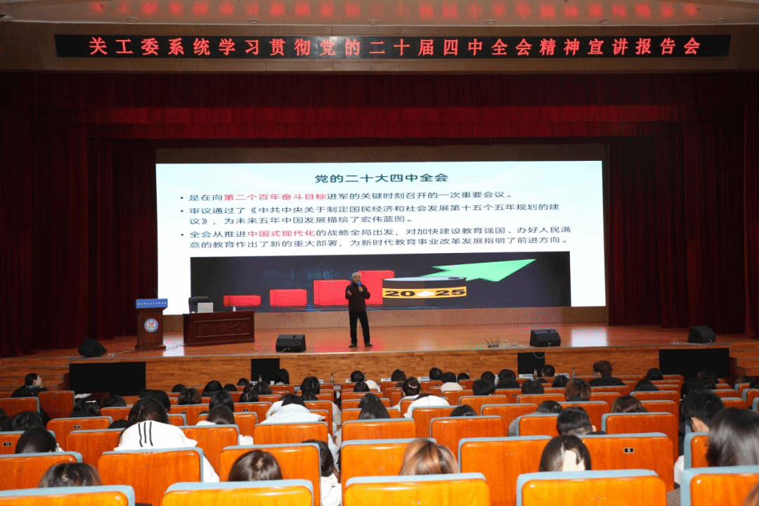 为深入学习贯彻党的二十届四中全会精神,引导青年学子筑牢思想根基、勇担时代使命, 12月18日,由锦州市关工委、锦州市教育局关工委、星空搜索app联合主办的关工委系统学习贯彻党的二十届四中全会精神入校宣讲报告会在我校报告厅举行。市关工委副主任贾宁超,市委教育工委专职副书记、市教育局党组成员、市教育局关工委常务副主任刘姝,市教育局关工委秘书长汪国民,星空搜索app党委副书记、校关工委副主任张宝利,党委委员、组织部部长马利以及300多名师生代表,现场聆听由市、局关工委“五老”工作团专家杜金奎、焦士学的报告,共同感悟全会精神内核,凝聚青春奋进力量。师专党委组织部副部长、学校关心下一代工作办公室主任姚璐主持报告会。