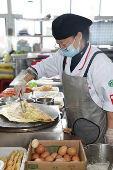 “说实话,每天都很累,躺在床上很快就能睡着。但是想到在战疫的特殊时期,自己能做一些贡献,让全校师生吃上热乎饭,心里马上就甜了。”清晨天色未亮,当同学们还在梦乡的时候,师专食堂灯早早就亮了起来。满载各类食材的货车经消毒后驶入校园,工作人员穿着防护服对其外包装进行消杀并开始验收……这是学校食堂工作人员近期日常工作的开始。3月17日,学校进入全封闭管理,没有一丝犹豫,食堂一线职工克服困难,在给家庭做妥善安置后,毅然决然选择留守学校,守护师生“舌尖上”的安全。