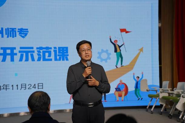 陈建军校长作总结讲话。他高度肯定了三位教师的精彩展示,对本次活动的举办给予高度赞誉,他并重点从教学目标、教学组织、教学方法、教师素质等方面,向参会教师阐释了“一堂好课”和“一个好教师”的标准。他指出,青年教师是学校的未来,青年教师的成长和进步对学校的可持续发展至关重要。他强调,相关教学职能部门后续要将优质课程评选和示范课展示活动纳入学校常规工作,建立“示范引领、提质增效”的长效机制,为教师尤其是青年教师的成长成才搭建更好的发展平台,提供更多的支持保障。