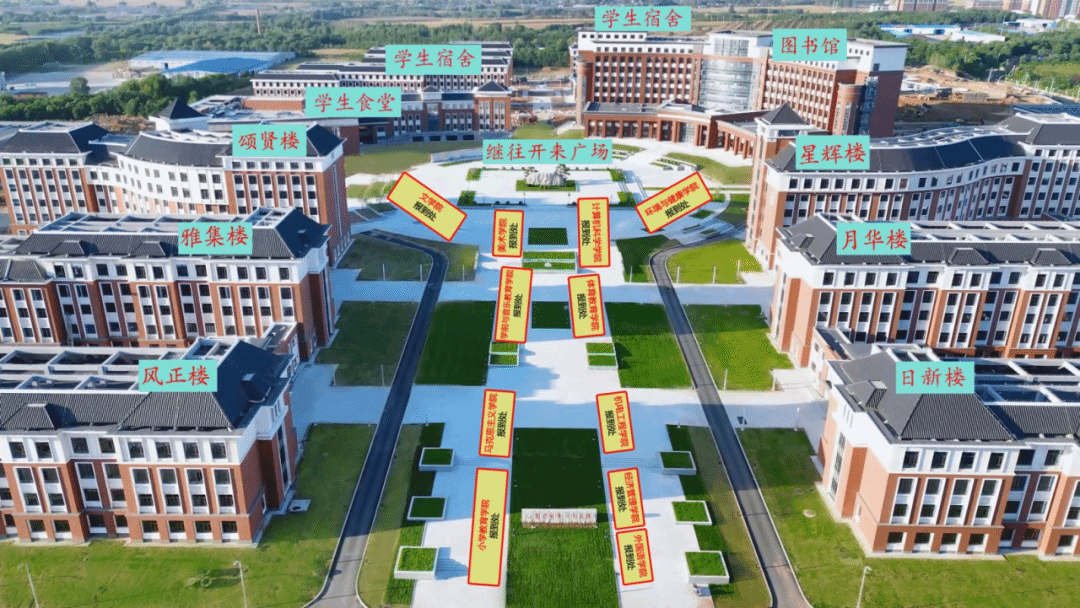 学校在南门各教学楼楼下广场设置新生报到处、绿色通道服务处、志愿者服务处、银行服务处、大学生医保咨询服务处。
