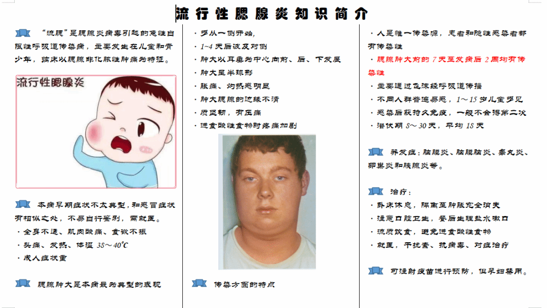 腮腺炎病毒感染腮腺引起的(另有一种细菌感染的化脓性腮腺炎无传染性),但本病毒其实可侵犯全身多处组织器官,比如胰脏、睾丸、中枢神经系统等。