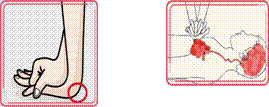需要强调的是,绑缚肢体时一定不能包裹住肢端(手足),要将手指足趾暴露出来,以便随时观察肢体血液循环的情况。