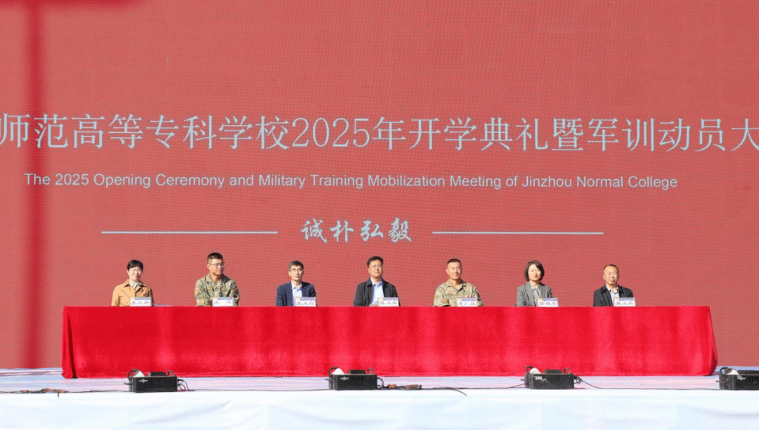 10月13日上午9时,锦州师范高等专科学校在滨海新校区隆重举行2025年学生开学典礼暨军训动员大会。学校党委书记、校长陈建军,党委副书记张宝利,副校长王宏岩,纪委书记郜雅杰,副校长崔宝秋,军训承训部队领导及教官,校友代表,各部门、各学院主要负责同志、全体学工人员、教师代表和来自全国各地的2025级学生共同见证了这一庄严时刻。开学典礼暨军训动员大会由王宏岩主持。