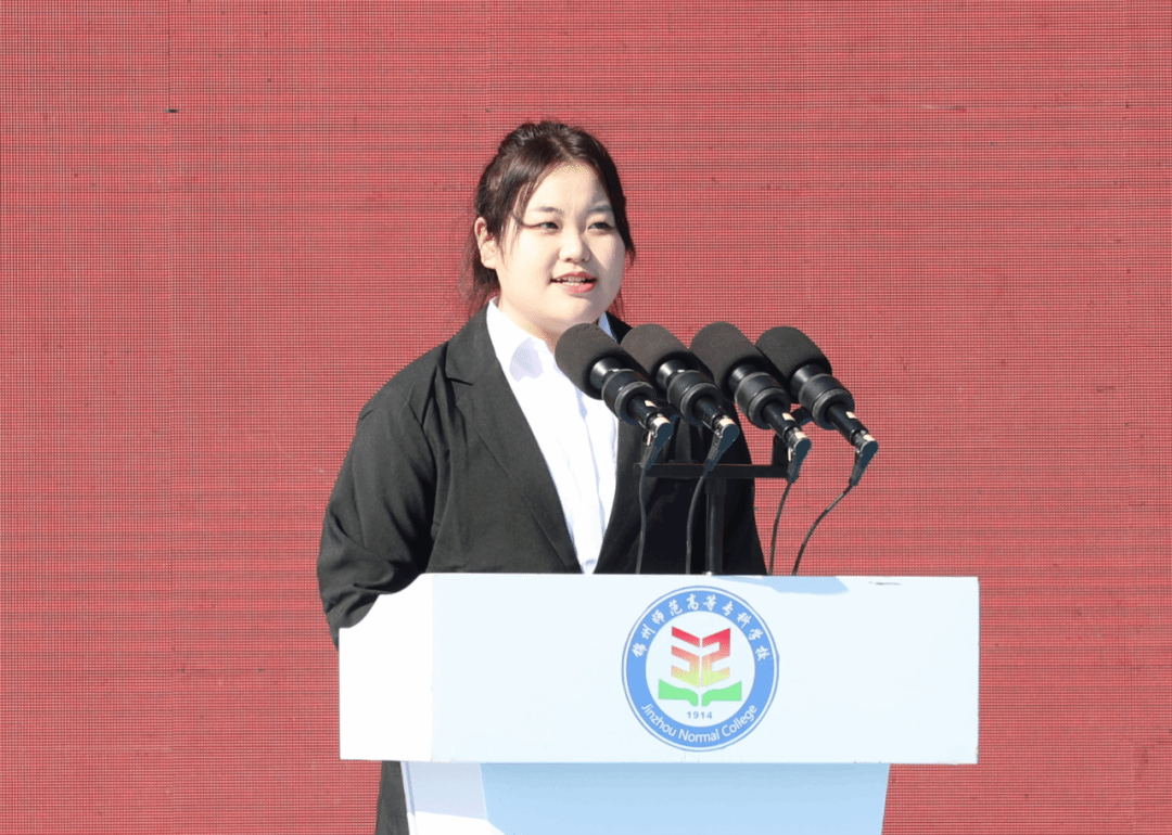 马克思主义学院2024级学生王浩棉代表全体在校生发言。他从五个方面对如何让大学这段时光过得更有意义给出了既有践行性又贴合实际的有效建议,鼓励同学们要做既能在专业课本里啃下“硬骨头”、在大学生活里找到“小热爱”,也能在社会实践中学会“担责任”、在军训中磨炼出“强意志”的富有新时代锦州师专精神的优秀青年。