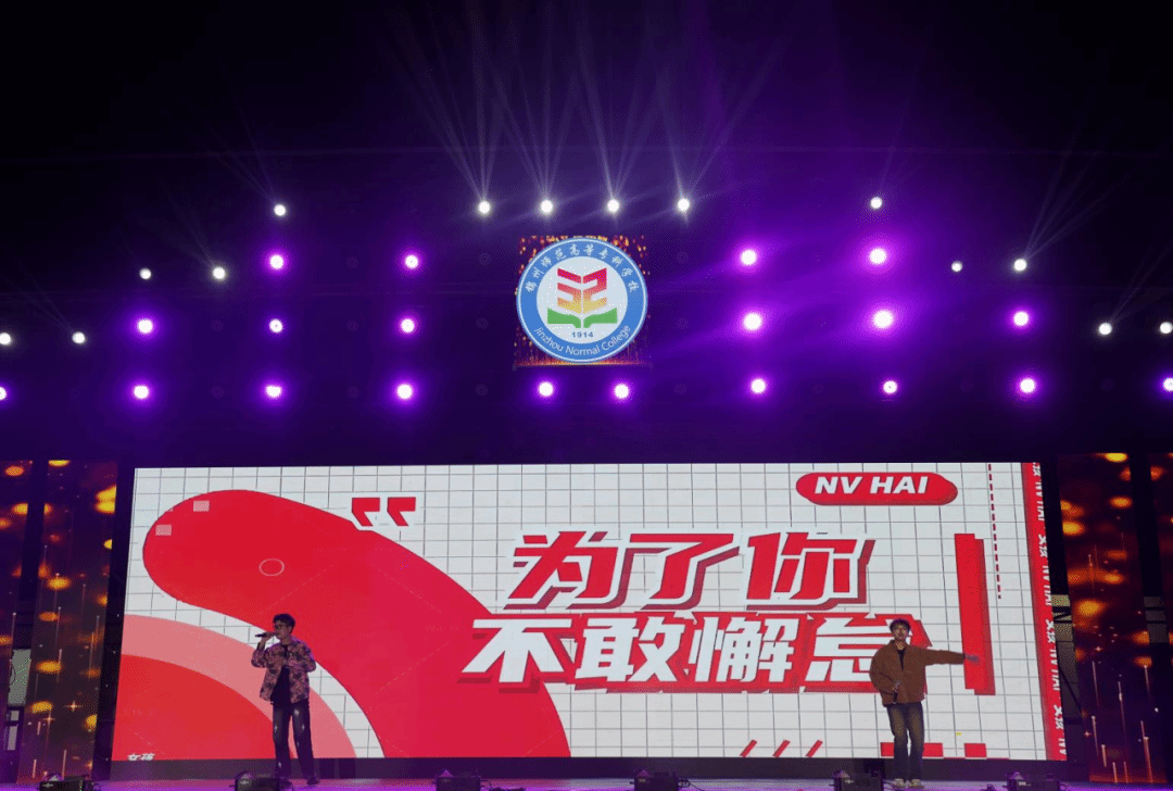 当晚17时30分,“新程序章,乘浪笃行”主题迎新晚会在充满历史厚重感的校史情景剧中盛大启幕。本次晚会节目从时尚流行歌舞到原创佳作,从国潮韵味到多元融合的风格碰撞,情景剧、对唱、合唱、说唱、快板、古典舞、街舞、民族舞、歌伴舞、健美、走秀等多种表演形式轮番上演,军训教官也走上舞台倾情演出。晚会的舞台编导、演职人员均为学校师生,所有演出节目均为师生原创、改编作品。整场晚会集彰显青春活力、汇聚师生力量、涵养艺术气韵、凝聚价值认同、厚植校史情怀、涵养家国担当于一体,聚焦青年使命与担当,实现个人情感与集体价值的深度融合,以动人故事回溯革命岁月,传递“请党放心,强国有我”的时代号召,不仅是一场文艺盛宴,也是一堂“沉浸式思政课”,让“师专精神”的时代内涵浸润在每位同学心中。