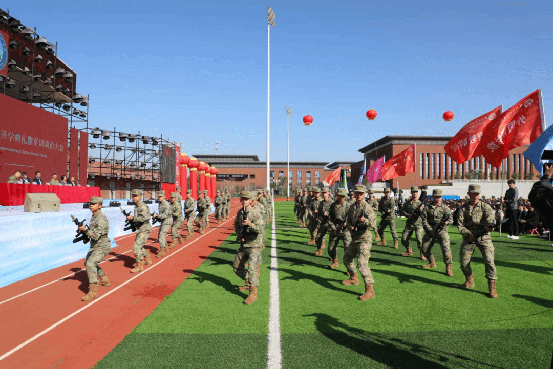 开学典礼暨军训动员大会在庄严的国歌声中拉开序幕。国旗护卫队步履铿锵,五星红旗迎风飘扬,全体师生庄严肃立,面向国旗行注目礼,将锦州师专人的赤诚与坚定化为新学期最炽热的开场白。