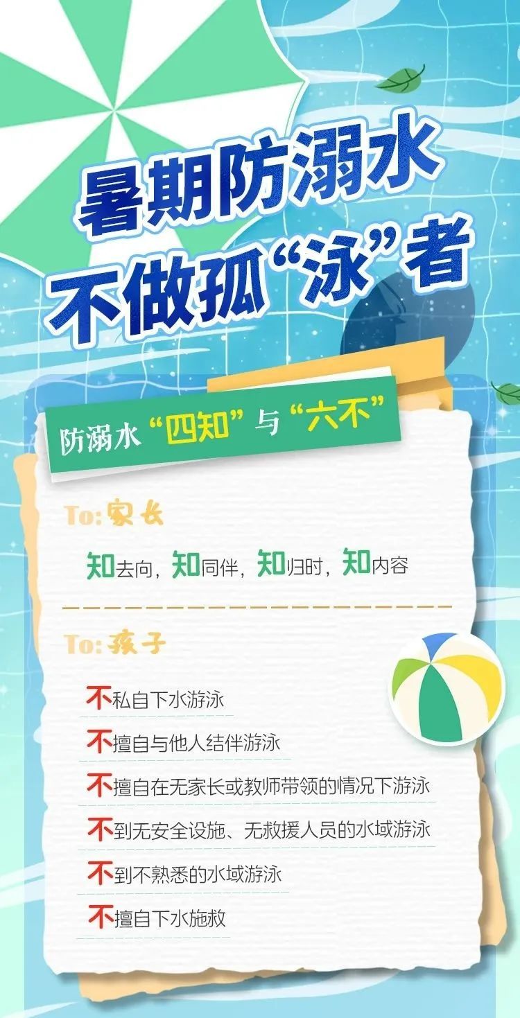生命诚可贵,防溺记心间。让我们家校携手,增强忧患意识,加强监护教育,全面筑牢学生防溺水“安全线”,共同织密学生生命安全“保护网”,共同为学生营造一个安全、和谐的学习和生活环境,保障广大学子平安生活、健康成长!