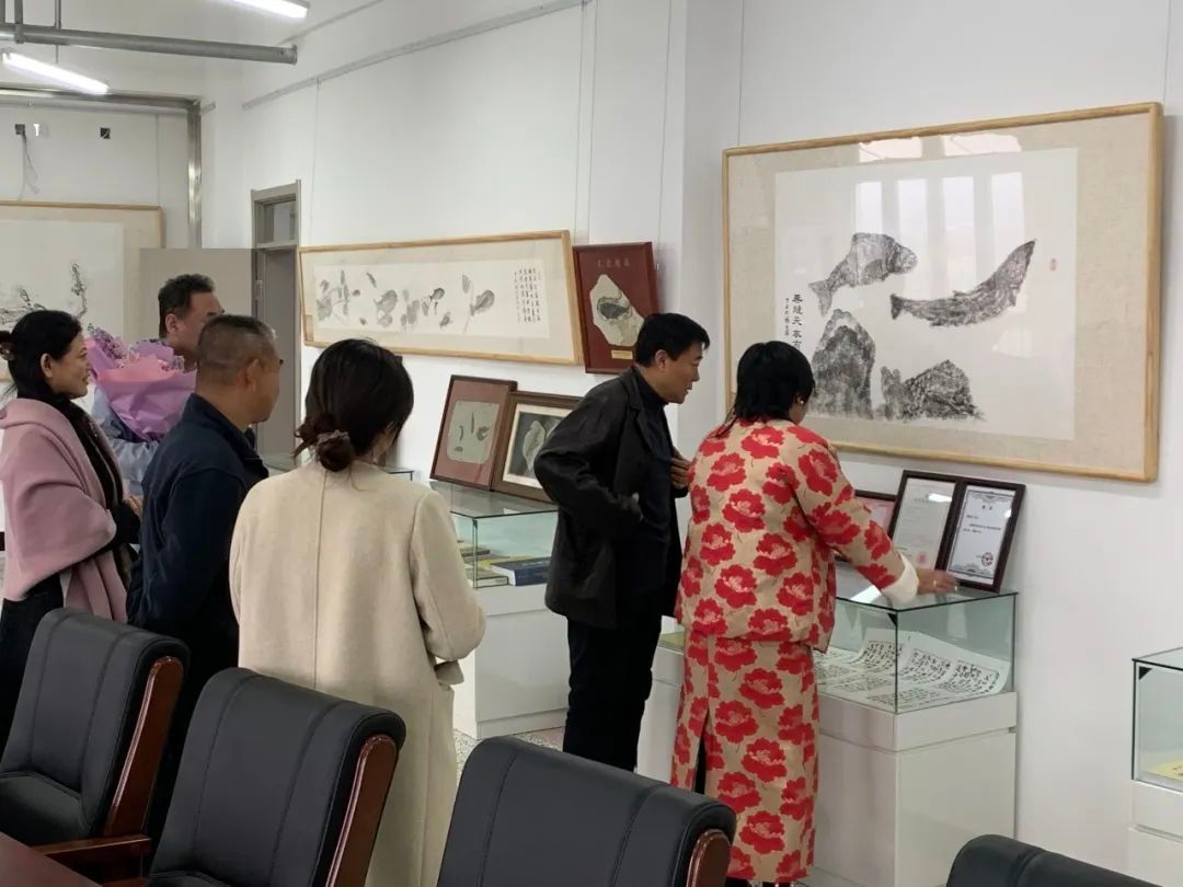 活动后,张慧董事长在梁晓东老师、张翠院长、张辉书记的引导介绍下,参观了落户文学院的梁晓东化石文化研究工作室以及位于图书馆一楼的具有浓郁文化气息的荟萃轩。